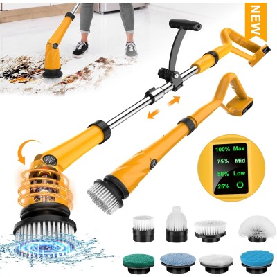 1500 RPM Electric Spin Scrubber for DeWalt 20V Battery, Power Shower Scrubber for Bathroom/Floor/Bathtub/Toilet/Tile,Electric Cleaning Brush with Long Handle & 8 Replaceable Brush