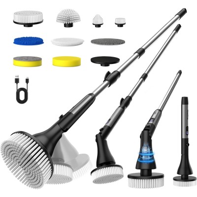 Electric Spin Scrubber with 9 Brush Heads, 3-Angle & 4-Length Adjustable Cordless Power Scrubber, 3-Speed & Battery LED Display, Electric Scrubber for Cleaning Bathroom Bathtub Floor Tiles