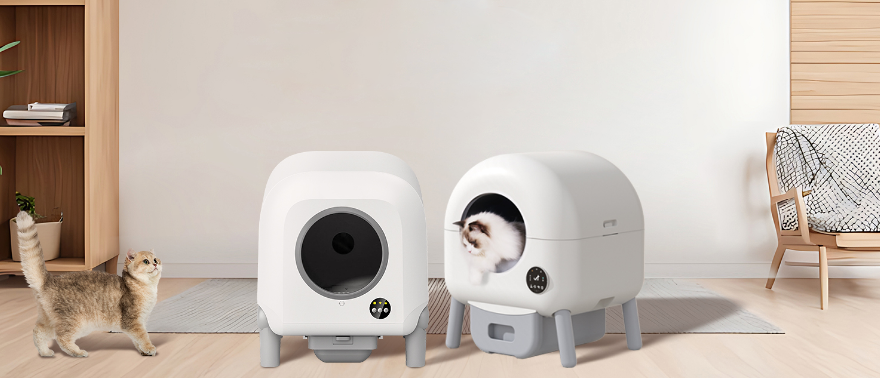 Open-Top Self Cleaning Litter Box, Automatic Litter Box with Dual Safety Sensors, Anti-Pinch Protection, Large Capacity, APP Control, White-Grey
