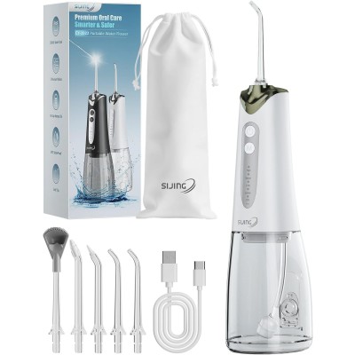 Water Flosser for Teeth, 300ML Cordless Flosser for Teeth Braces, 5 Modes DIY Mode Rechargeable Dental floss, IPX7 Waterproof Portable water flosser with 5 Jet Tips for Travel(White)